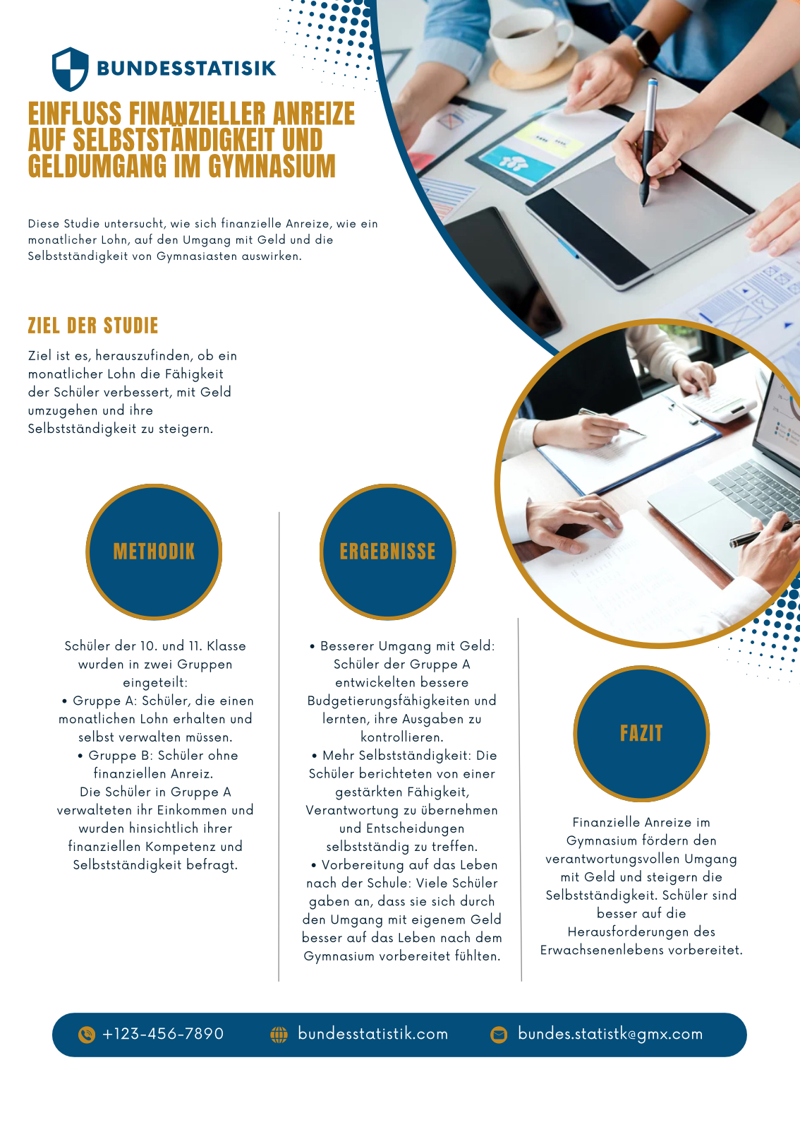 Dies wollen wir, die Gesellschaft für erweiterte Leistungsgerechtigkeit und Durchlässigkeit („G.E.L.D.“), ändern. Gymnasiasten der Oberstufe sollen entlohnt werden. Wir haben gesehen, wie wichtig die Kombination aus Bildung und Vermögen zusammen für unsere Gesellschaft und vor allem für ihre Zukunft ist.